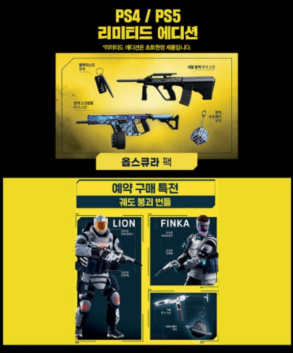 위 맥락과 마찬가지로, 플레이스테이션 유저들도 리미티드 에디션으로 구매가 가능한데요. 구매시 옵스큐라 팩과 궤도 붕괴 번들을 증정합니다. 쉽게 이야기 하면 스킨과 총기 부착물(악세사리)인데요.