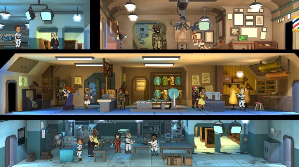 이름에서 알 수 있듯이 폴아웃 쉘터는 기존의 폴아웃 배경관을 그대로 따르는 게임이면서 동시에 쉘터를 보다 더 거시적으로 관리 하는 타이쿤 형식의 게임으로 생각해 볼 수가 있겠습니다. 때문에 쉘터 거주자들의 안녕을 목표로 하는 게 바로 이 게임인데요.