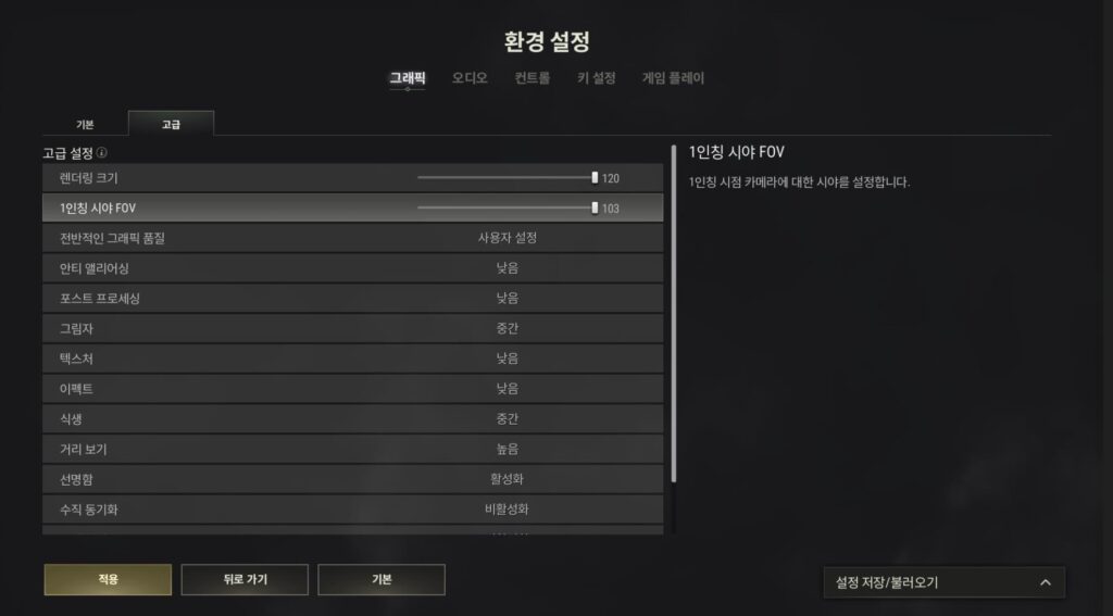 2. 렌더링 크기와 1인칭 FOV를 조절하자!