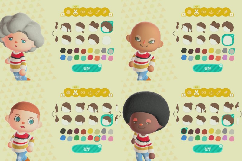 밋밋한 동물의 숲 기본 헤어스타일 말고 6종의 헤어스타일이 추가된다. 아프로 펌, 레게 머리 등도 있고, 민머리와 빡빡머리도 추가된다. 마일 1,800포인트로 교환 가능하다.