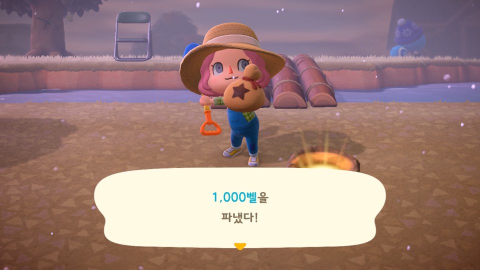 이때 1,000벨을 얻은 뒤 강한 빛을 뿜는 땅이 보이실텐데요. 여기서 땅을 다시 덮지 않고 벨을 심으면 돈이 자라나는 돈나무가 자란다는 사실!