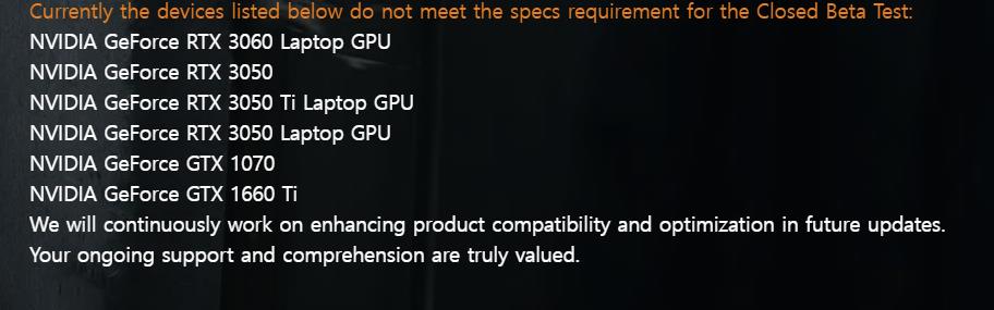 위 리스트에 기재되어 있는 그래픽 카드를 사용하고 계실 경우, 게임이 실행 자체가 안되거나 실행된다고 해도 엄청난 프레임 드랍을 경험하실 수 있습니다. 그러므로 이번 테스트를 위해서는 고사양의 PC가 필수적이라고 이해하시면 될 것 같습니다.