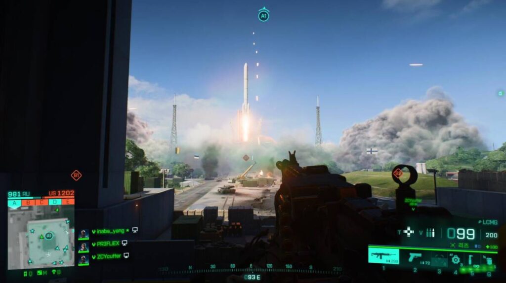 배틀필드하면 떠오르는 것이 몇 가지 있죠. 대형 난전, 지형지물 파괴가 대표적인 요소들일텐데요. 배틀필드 2042 에서도 마찬가지로 그러한 것들이 구현되어 있습니다. 완전히 모든 건물들을 부실 수 있는 것은 아니지만 말이죠. 위 사진은 예고편에서도 매우 각광을 받았던 장면인 로켓 발사 장면인데요. 게임 초창기에는 로켓이 발사되기만 하면 프레임이 급락하거나 크래쉬가 생기는 등 문제가 많았습니다.