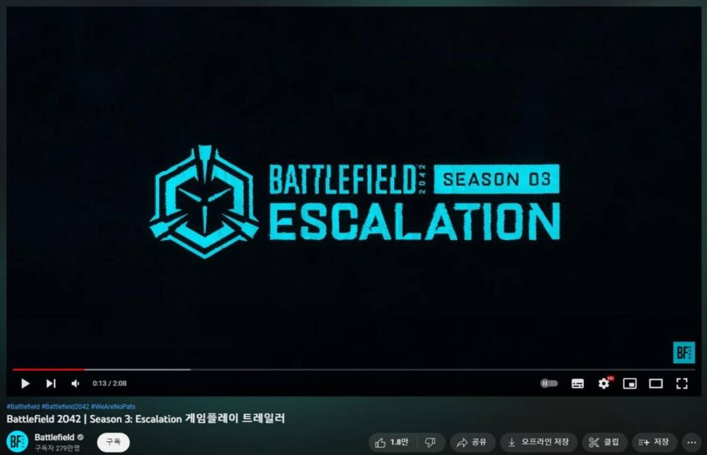 여지껏 디테일한 부분에서 엉망이었던 배틀필드 2042 가 이번에는 완성된 면모를 보여주었으면 합니다. 시즌을 대표하는 색상 자체도 파란색으로 돌아온다는 점을 보면 옛 명성을 찾으려고 하는 것처럼 보이기도 하는 데다가, 시즌명 또한 Escalation 이니 무언가 바뀐 점들이 많겠지요.