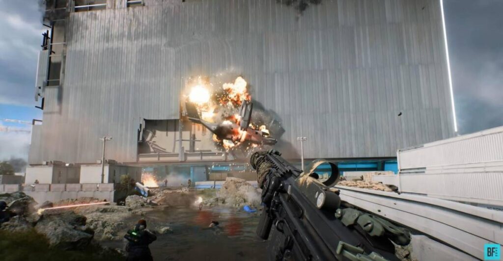 새로운 맵에서 수송기가 외벽을 긁으며 추락하는 모습입니다. 배틀필드의 시그니처 중 한 가지가 자체 엔진을 통해 나타내는 파괴 효과인데요. 그러한 모습들이 배틀필드 2042 에서는 다소 아쉽게 나타났기 때문에 이번 배틀필드 2042 시즌3 에서 어떨지 적잖은 걱정이 되었던 상황입니다.