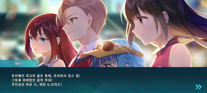 게임을 시작하면 튜토리얼과 함께 간단한 스토리를 감상할 수 있다. 골프의 종주국 트리베인 왕국, 그리고 왕국에 세계 최초로 설립된 명문 골프학교 델라이언브리지 골프 아카데미. 플레이어는 이 골프 아카데미의 학생 네명과 함께 골프 챔피언의 꿈을 키워나간다… 는 것이 버디 크러시의 주요 스토리다. 아무래도 골프 게임이 대중적이진 않으니 아기자기한 그래픽과 귀여운 캐릭터, 판타지스러운 설정을 내세운 듯!