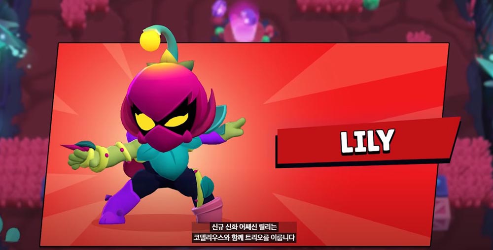 새로운 브롤러 ‘릴리‘는 한때 인간 소녀였지만, 반딧불이를 쫓아 들어간 마법의 숲에서 신비한 꽃에 사로잡혀 변신하게 되었다는 스토리를 가지고 있습니다.
