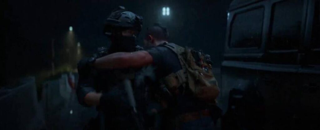 이 씬을 요약짤로 선택한 이유는 스토리 때문입니다. 지금까지 공개된 스토리는 ‘테러리스트를 막기 위해, 테스크 포스 팀과 멕시코 특수부대가 합작을 한다’인데, 그러한 대목이 위 장면에서 잘 드러납니다. 게다가, 프레임의 한 가운데에 멕시코 특수부대 대령 바르가스가 있는 것을 보면 무언가 엄청난 활약을 하다가 전사하는 일이 생기지 않을까 기대하게 만듭니다.