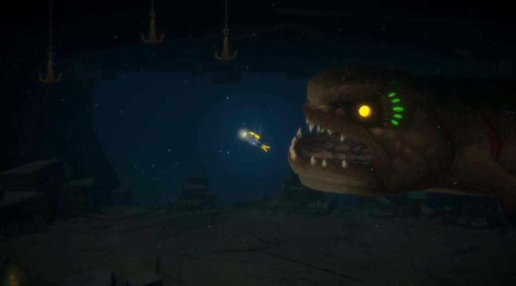 이제 초밥집에서 얻은 자금을 가지고서 더 미지의 세계로 떠나볼 수 있습니다. 깊은 바닷속(심해)에는 우리가 알 수 없는 일들이 벌어지고 있는데요. 이상 현상이 생긴 거대 블루홀에는 ‘미지의 생명체’들이 유저를 맞이할 준비를 하고 있습니다. 심해 속에는 위 사진처럼 바다 거북의 형상을 띄고 있지만, 엄청나게 거대하여 사람을 단번에 집어삼킬 수 있다는 공포감을 내뿜는 존재도 있습니다.