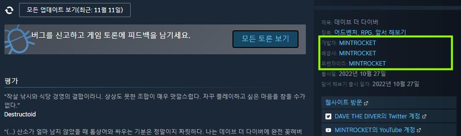 이러한 사례들을 보았을 때, 분명 앞으로의 게임사들은 적극적으로 피드백 하는 모습이 디폴트값이 될 것이라고 생각하는데요. 그러한 점에 있어서 데이브 더 다이버는 5점 만점 중에 5점인 것 같습니다.