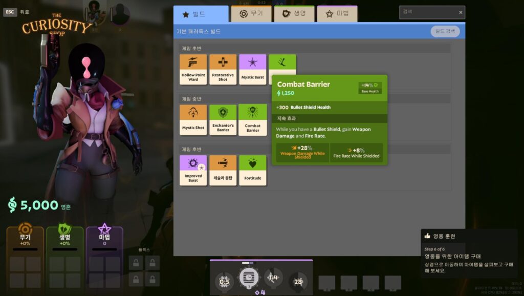 데드락 공략 2. 게임에 익숙해졌을 때의 빌드는?