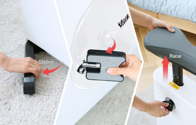 일반적으로 실내자전거는 사용자의 체중을 안정적으로 견딜 수 있는 구조로 제작됐다. 이렇다보니 부피가 커질 수 밖에 없다. 여기에 폴딩 방식을 더하면?