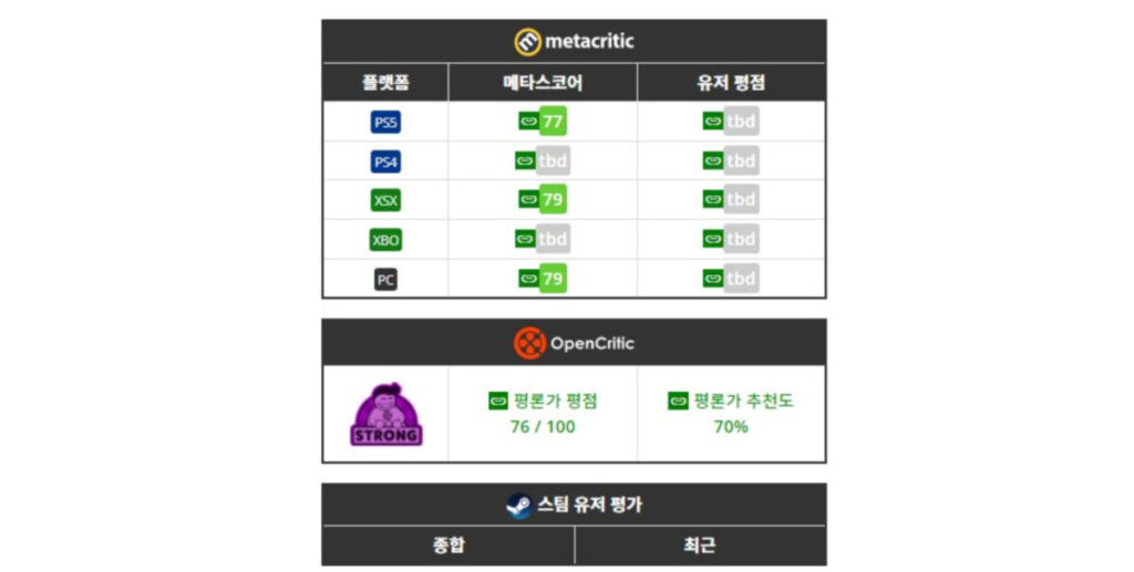 메타크리틱과 오픈크리틱 점수(출처 : 나무위키)
