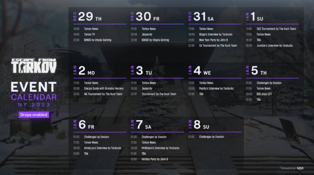 타르코프 드롭스 이벤트 기간