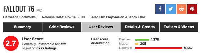 그 결과는 뭐… 아시다시피. 폴아웃76은 시리즈 작품 중에서는 물론이고 최근 수 년 내에 출시된 게임 중에서도 유례 없는 혹평을 받았다. 게임 주요 무대인 애팔래치아처럼, 폴아웃76도 폐허가 돼 버렸다.