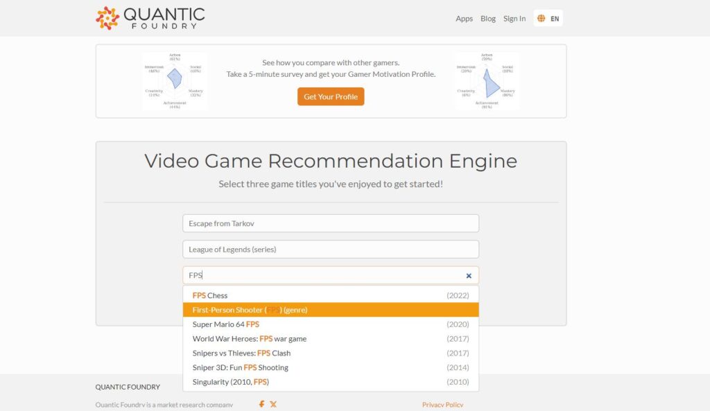 2. 두 번째 게임 추천 방법, Quantic Foundry