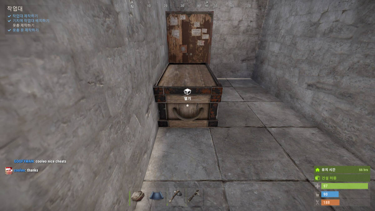 이에 대해서는 여러 가지 변형이 있기 때문에 유저분들의 기량이 드러나는 부분이 되겠습니다만, 아이디어가 크게 떠오르지 않으시는 분들은 무조건 위 사진처럼 도구함과 나무 상자를 맞닿게 설치하는 걸 기억하시면 될 것 같다고 생각합니다.