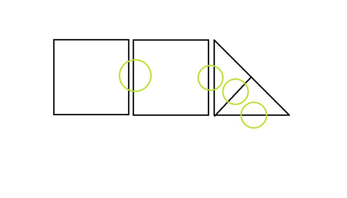 먼저 위에서 본 심플한 도안입니다. 제일 유행하고 있는 2×1 베이스의 조금 더 보강된 버전이라고 보실 수 있을 것 같습니다. 후반으로 갈수록 효용이 떨어지는 측면이 있지만, 게임의 초중반에는 확실한 보안성을 보여주는 빌드입니다. 초록색 동그라미 처리된 부분은 문이 설치될 수 있는 공간을 의미합니다.
