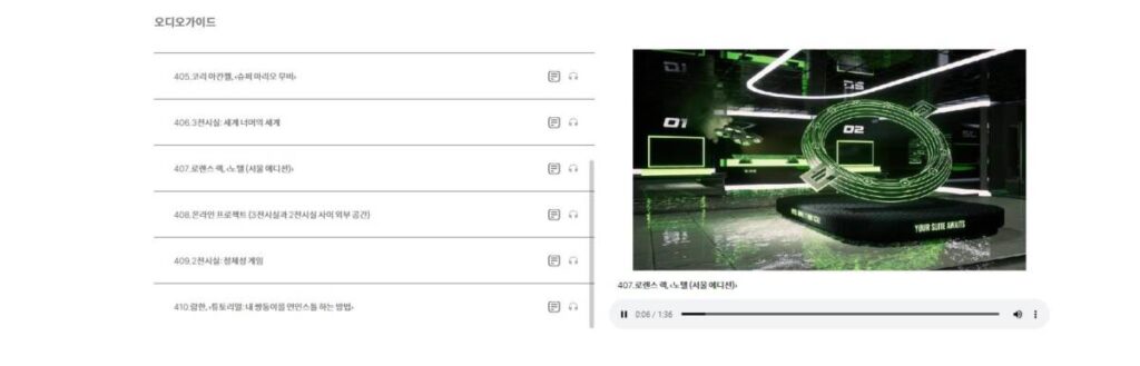 전시회를 꼭 가지 않아도 온라인 도슨트를 통해서 분위기를 미리 파악할 수 있으니 우선 게임에 대한 흥미가 있으시다면 공식 홈페이지에서 온라인 도슨트를 이용해보시기 바랍니다.