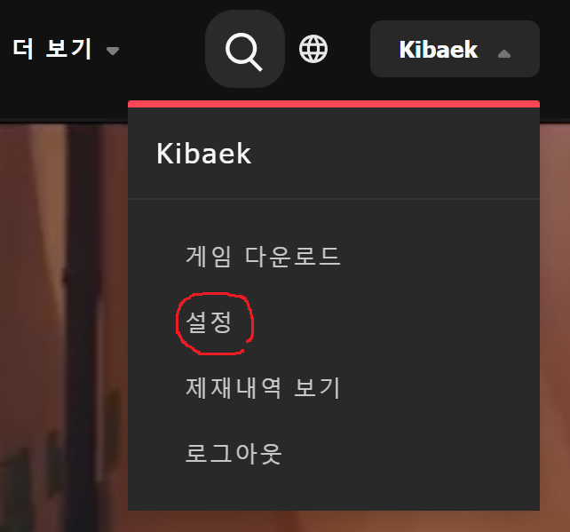 로그인이 된 상태에서, 내 닉네임에 커서를 갖다 대면 아래와 같이 나오는 메뉴에서, ‘설정’을 클릭.