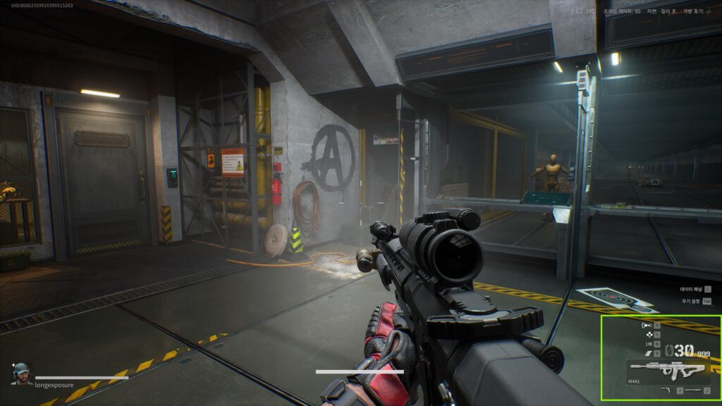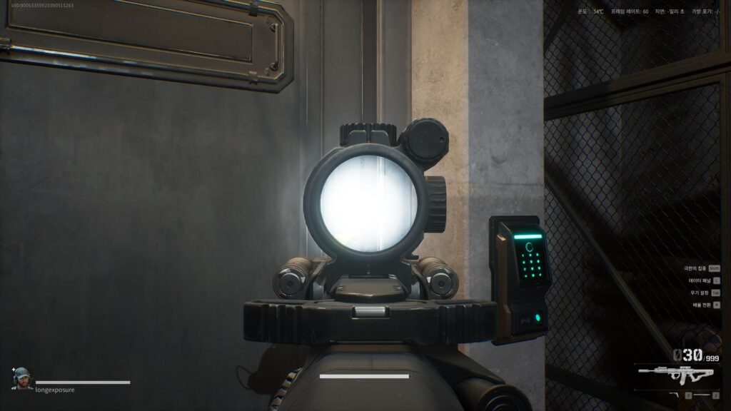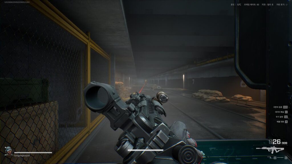 최종적으로, 전술 사격 자세를 통해서 중-근거리 커버를 해볼 수 있는데요. 라이트를 부착하더라도 중거리에서는 잘 보이기 때문에 전술 사격을 사용할 일이 거의 없지만, 근거리에서는 유용하게 쓰일 수가 있습니다.