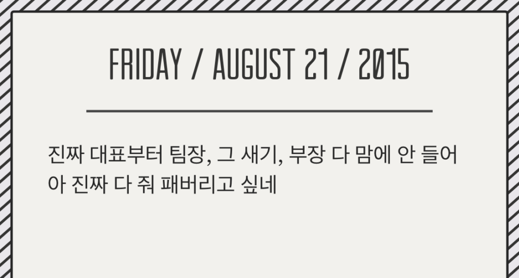 이 앱의 매력은 하루의 기록을 남기는 과정이 지극히 간다는 데 있는 것 같아요. 에디터가 2015녀에 잠시 사용했던 다이어리 앱에도 “아 진짜 다 줘 패버리고 싶다”거나(…), “빨리 봄 됐으면 좋겠다” 등 간단한 한 두줄 정도밖에 적혀있지 않거든요.