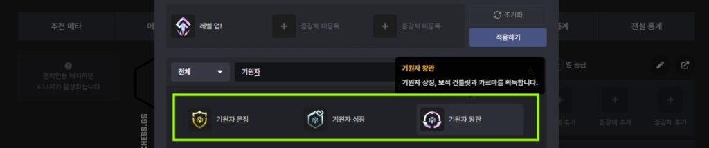 아무래도 기원자 중심 덱이기 때문에 기원자와 관련된 무언가가 있으면 좋습니다. 심장이라고 하더라도 괜찮습니다. 최종적으로 6 기원자를 맞추는 것이 목표이기 때문에 낮은 레벨의 챔피언을 빼고 다른 특성을 활성화 시켜주기 좋으므로 기원자 관련 증강이 나왔을 때에는 주저하지 않고 선택해주도록 합니다.