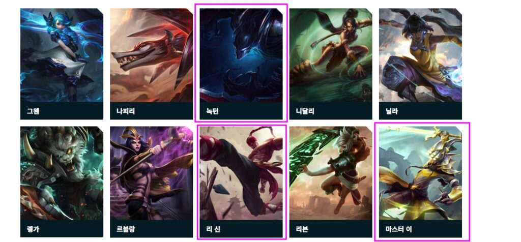 롤은 늘 그랬듯, 메타 챔피언들 위주로 돌아가곤 하는데 말이죠. 특히 요즘 더 심하게 느껴집니다. 그렇기 때문에 트렌드가 되고 있는 주 챔피언들이 무엇인지에 대해서 알고 플레이 하는 것과 모르고 플레이 하는 것에는 상당한 차이가 있을 수 밖에 없습니다. 이를 적극적으로 활용하는 것이 티어 상승은 물론, 아이언 – 브론즈 – 실버 탈출에 매우 엄청난 영향을 끼칩니다.