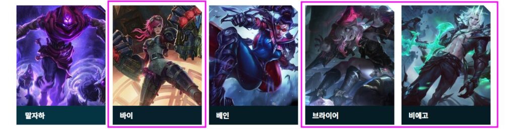 다음은 브라이어와 비에고입니다. 이 둘은 현재 티어를 막론하고 굉장히 자주 나타나는 챔피언들이며, 파일럿에 따라서 가능성이 무궁무진합니다.