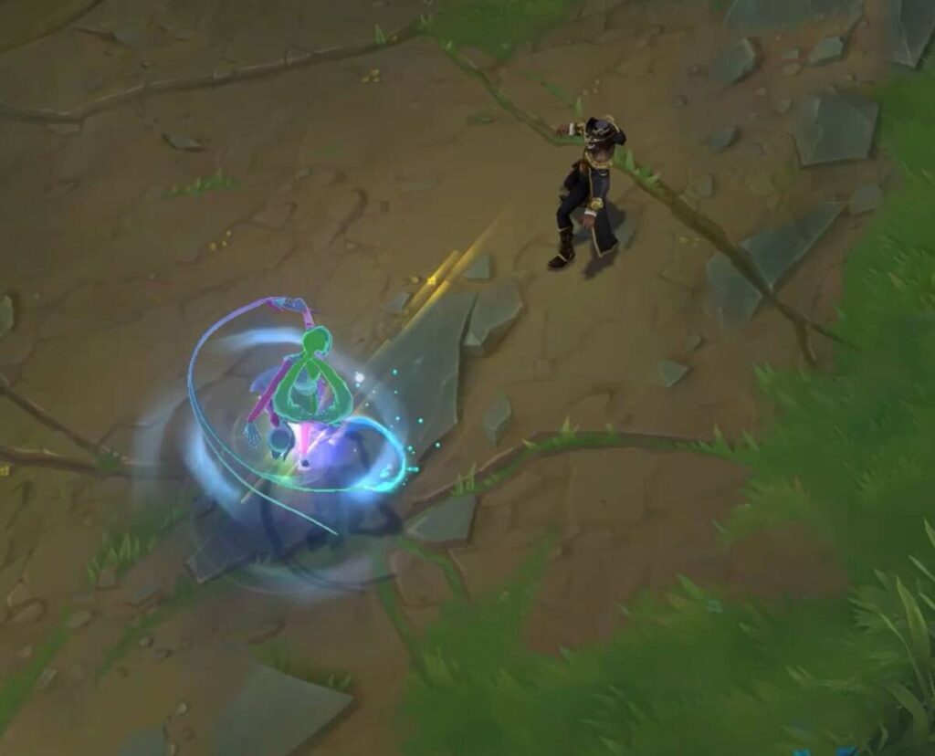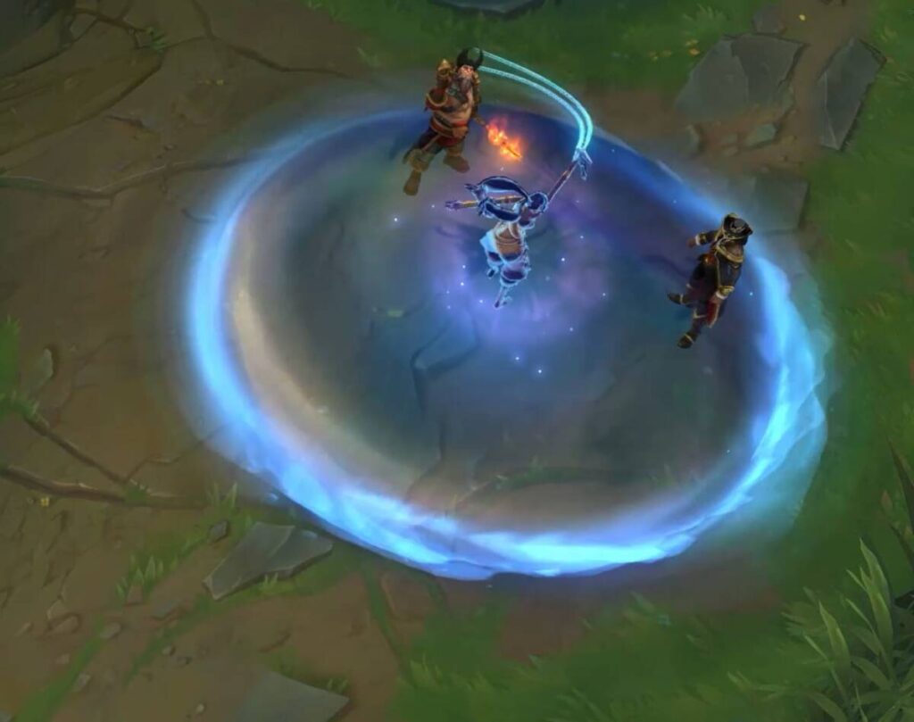- 아군 챔피언과 닿으면 대상을 장막으로 감싼다. 아군에게 부여한 장막 지속시간은 더 짧다.