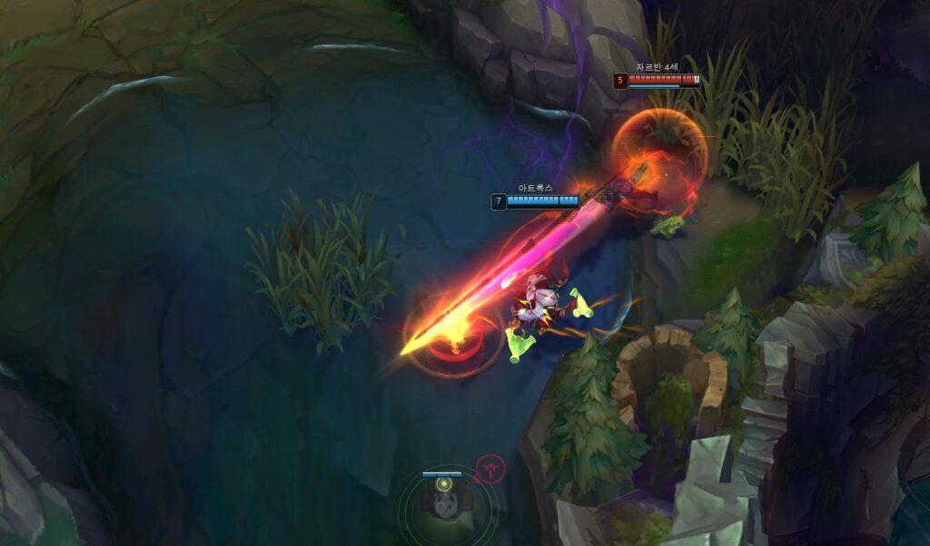 특히, E 스킬 같은 경우 공격 속도를 올려주는데 체감이 굉장히 많이 될 정도로 성능이 괜찮은 편입니다. 때문에 중후반에 갈수록 더 빠른 정글링이 가능하죠.