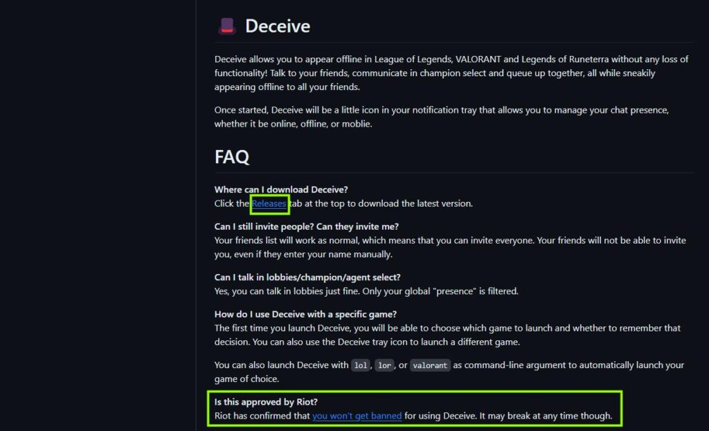 롤 오프라인 모드를 가능하게 해주는 프로그램인 Deceive는 ‘이 링크’ 를 통해서 다운받으실 수 있습니다.