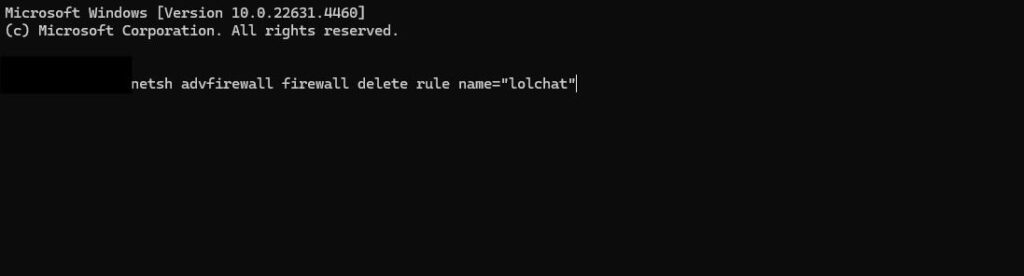 명령어 : netsh advfirewall firewall delete rule name="lolchat"