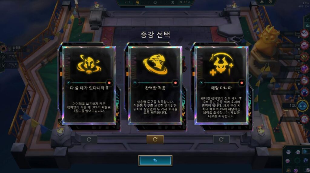 롤토체스 브론즈 티어 특징 4. 승률 높은 증강을 이용하지 않는다