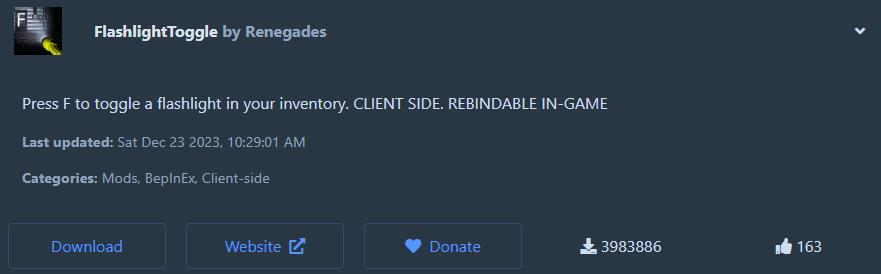 이 모드도 리썰 컴퍼니 모드 추천 순위 중 기본이라고 할 수 있을 것 같아요. 단순히 F키를 이용해서 플래쉬라이트를 끄고 켜는 모드이지만 이것 하나가 게임에 굉장한 도움이 된답니다. 물건을 들고 있을 때에도 끄고 켤 수 있고, 심지어 손전등을 들고 있지 않아도 사용이 가능해요. 인벤토리에 플래쉬라이트를 갖고 있으면 활용이 가능한데요. 조작키 또한 인게임에서 플레이어가 원하는 방식으로 설정할 수 있다는 장점을 가지고 있어요.