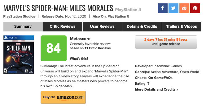 플스5 출시가 코앞으로 다가온 가운데 일부 리뷰어 및 웹진에 제공됐던 게임들의 엠바고가 풀려가고 있다. 이 가운데 플스5 런칭작인 스파이더맨 마일즈 모랄레스가 호평을 받으며 기대감을 고조시키고 있다.