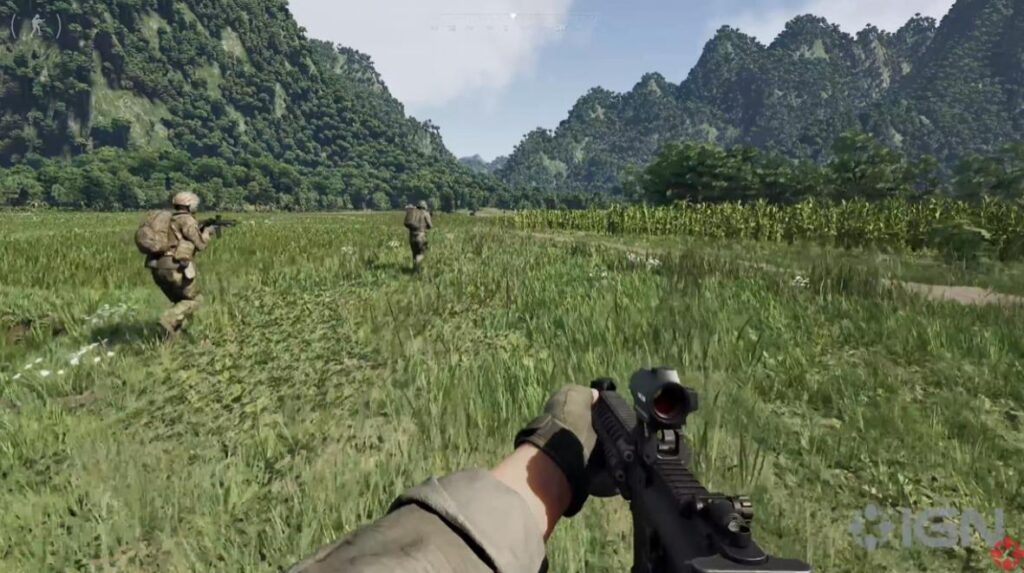 트레일러에서 아군의 주변에 조준점이 돌아가는 순간 ‘Examine’ 이라는 단어가 보이는 걸 살펴볼 수 있습니다. 그레이 존 워페어는 익스트랙션 루팅 게임이기 때문에 아이템 파밍이 가능하다는 게 특징인데요.