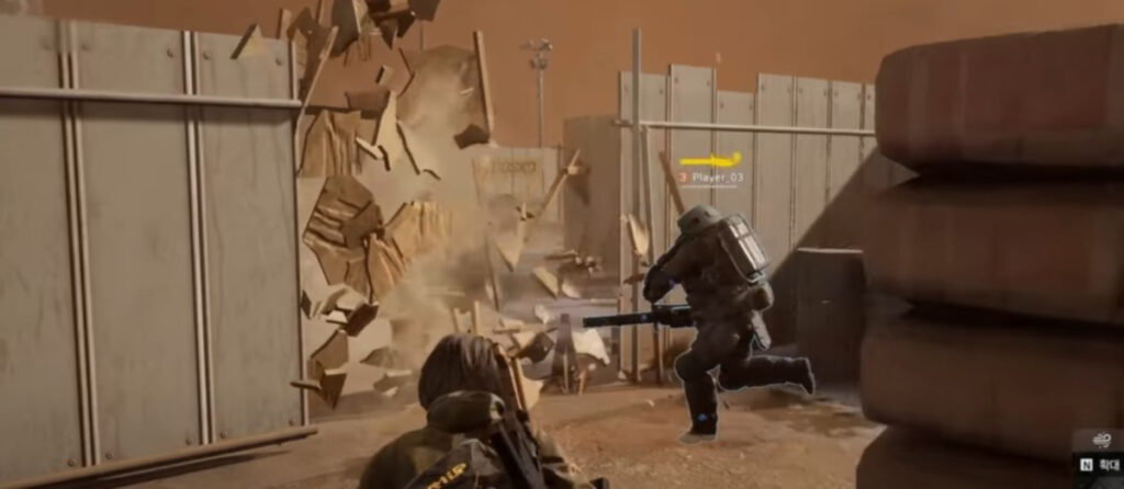 다음은 저거넛입니다. 콜 오브 듀티 해보신 분들은 아실 겁니다. 연속킬을 지속적으로 달성하면 총알도 튕겨내고 RPG도 버티는 무시무시한 장비를 장착할 수 있다는 사실을 말이죠! 프로젝트 D 에서도 나옵니다! 미니건을 들고 오브젝트를 부시면서 앞으로 나아가는 모습이 보이는데, 이것도 캐릭터 개인의 스킬이거나 자원을 모아 살 수 있는 장비같아 보이네요.