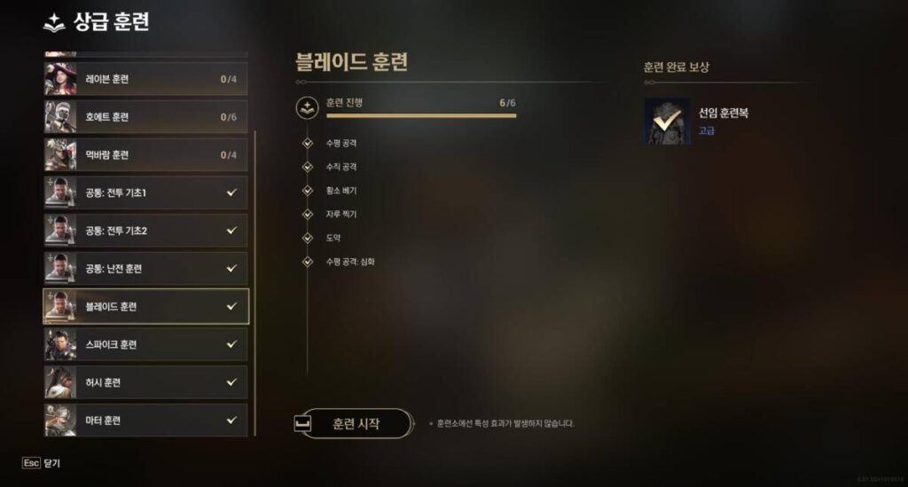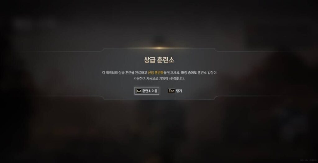 그런데 더 중요한 것은 바로 ‘상급 훈련’ 섹터인데요. 게임의 기본적인 흐름을 이해하게 해주는 것이 튜토리얼이라면, 구체적인 예시와 디테일한 스킬을 연마 가능하게 해주는 것이 바로 상급 훈련입니다. 상급 훈련은 현재 매칭 대기를 걸어두고서 수시로 플레이 할 수 있게 만들어져 있습니다.