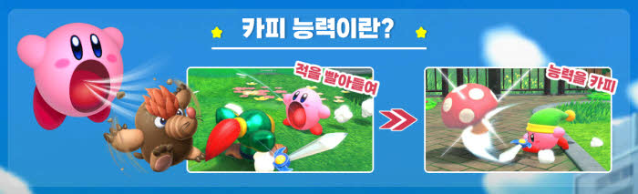 큰 입으로 뭐든지 빨아들여 능력을 카피하는 커비