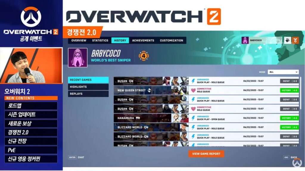 오버워치 2부터는 유저의 경쟁전 플레이 정보나 하이라이트 리플레이 등을 조금 더 쉽게 볼 수 있도록 변경되었다. 아무래도 오버워치 내에도 고의 트롤이 존재하는 만큼, 시스템의 변경을 통해 악성 플레이어들을 없앨 수 있는 좋은 계기가 되었으면 좋겠다는 바램이다.