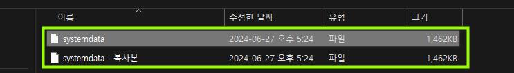 앞서 언급드린 ‘remote’ 폴더에 들어오셨다면 systemdata라는 파일이 있을 것입니다. (생성되지 않으신 분들은 게임을 설치 후 최초 실행을 1회 진행해주시거나 세이브를 한 차례 해주세요)