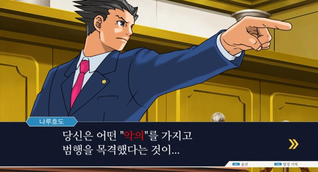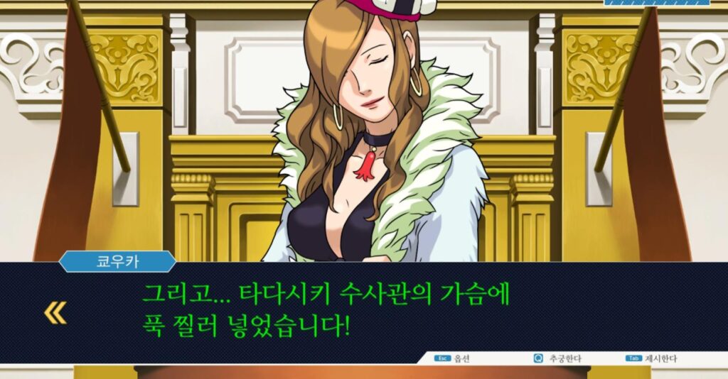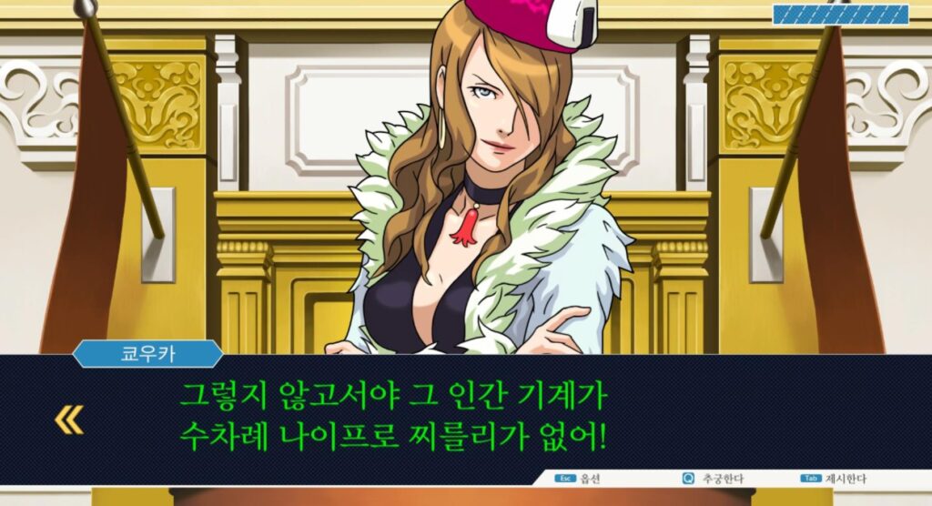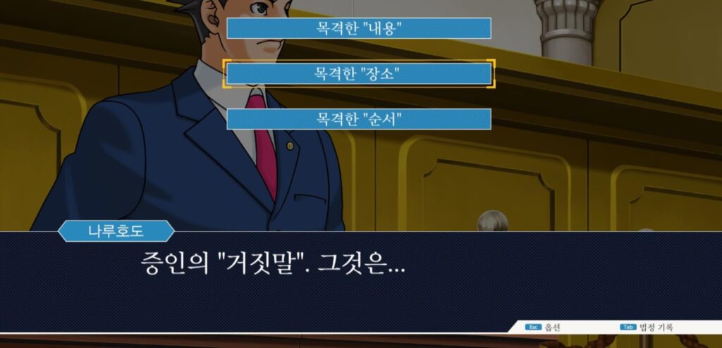 앞에서 언급하였듯 역전재판 123 공략 포인트, ‘모든 선택지에서는 과감하게, 공격적으로’ 임해주도록 합니다.