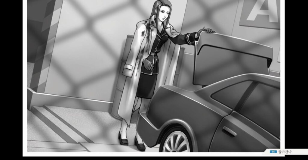 이렇게 올바른 답을 고른 뒤에 또 한 번 선택지가 주어지는데요. 이 때에는 ‘현장까지의 거리 차이’를 선택하시면 됩니다. 쿄우카는 외부인이기 때문에 수위실에서 A블럭까지 손쉽게 오갈 수 없습니다. 그러므로 거리 차이 때문에 위증을 한 것이죠.