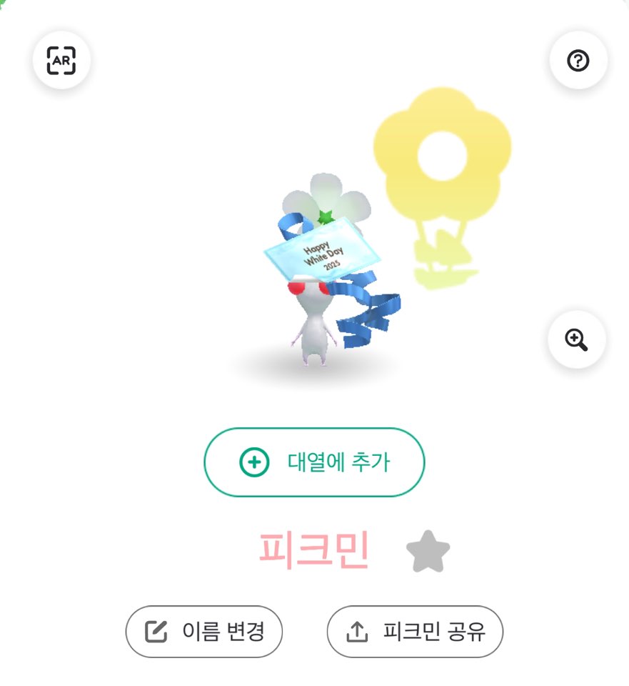 원하는 색상이나 이모티콘이 실제로 어떻게 나오는지 알 수 없으니 피크민 이름 변경으로 미리 테스트를 해봅시다. 원하시는 아무 피크민을 골라 이름 변경을 눌러주세요.