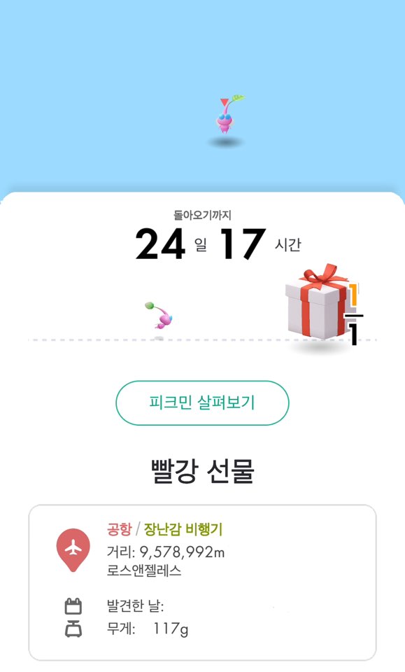 분홍 피크민의 경우 가장 적은 시간이 걸리기 때문에 빨강, 노랑, 파랑 등 긴 시간이 걸리는 피크민들을 위주로 먼저 키우는 편이에요. 분홍 피크민은 웬만하면 한국에서 보내도 꽤 빠르게 오는 편입니다. 한국 – 로스앤젤레스 기준 28일 소요되더라고요.