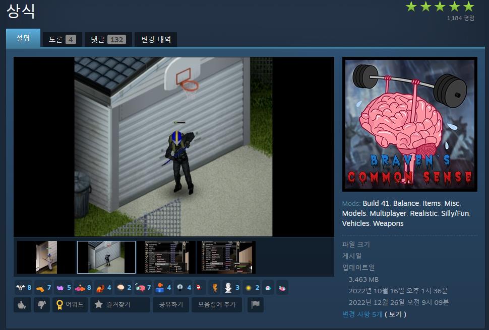 프로젝트 좀보이드의 게임적인 특성이라고 이야기 할 수도 있겠지만 이러한 불편함은 게임 플레이의 질을 떨어트리곤 합니다. 그래서 이러한 불편함을 개선시켜 주는 모드가 있으니, 바로 이 Braven’s Common Sense 모드입니다. 친히, 국내 어떤 유저분이 한글패치까지 참여한 것으로 보이는데요. 그 때문에 상식 모드라고 불리기도 합니다.