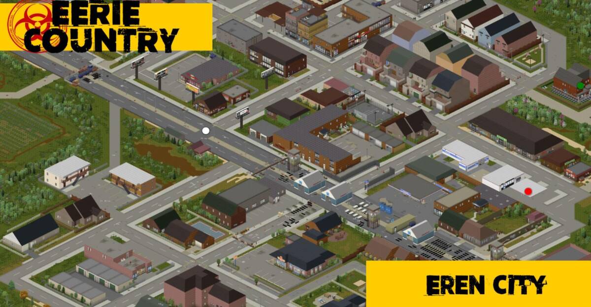 이어리 컨트리 맵에는 꽤나 많은 시그니처 구간들이 있습니다. 그 중 한 곳은 에렌 시티라고 이야기 할 수 있겠죠. 프로젝트 좀보이드에 나오는 도시맵들과 같이 일반적인 느낌의 도시입니다.