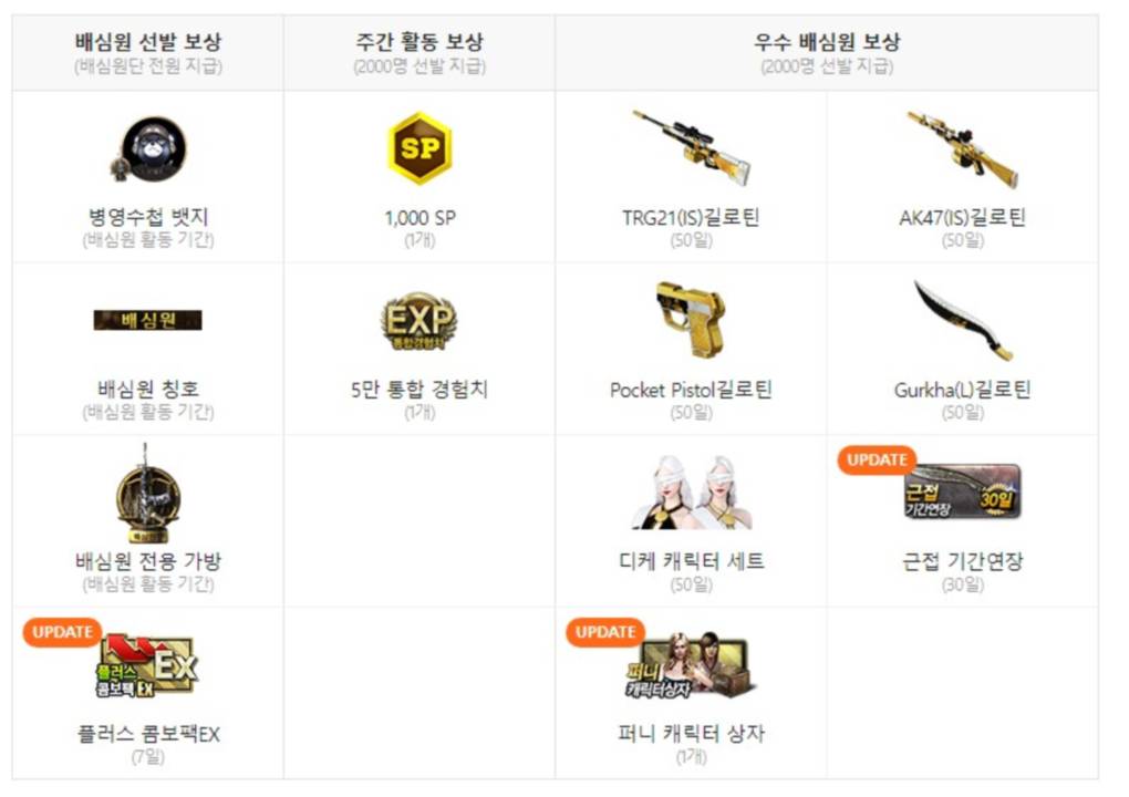 하지만 서든어택은 다릅니다. 길로틴 시스템을 꾸준하고, ‘잘’ 쓰게 되면 위와 같은 보상이 주어지게 되죠. 특히나 눈 여겨 볼만한 것은, 우수 배심원단이 되어 디케 캐릭터나 퍼니 캐릭터 상자를 받을 수 있다는 것이라고 생각 되어요. 다만 아쉬운 점은 모든 것이 기간제로 이루어져 있다는 것? 어떻게 보면 당연한 이야기이기도 하네요.