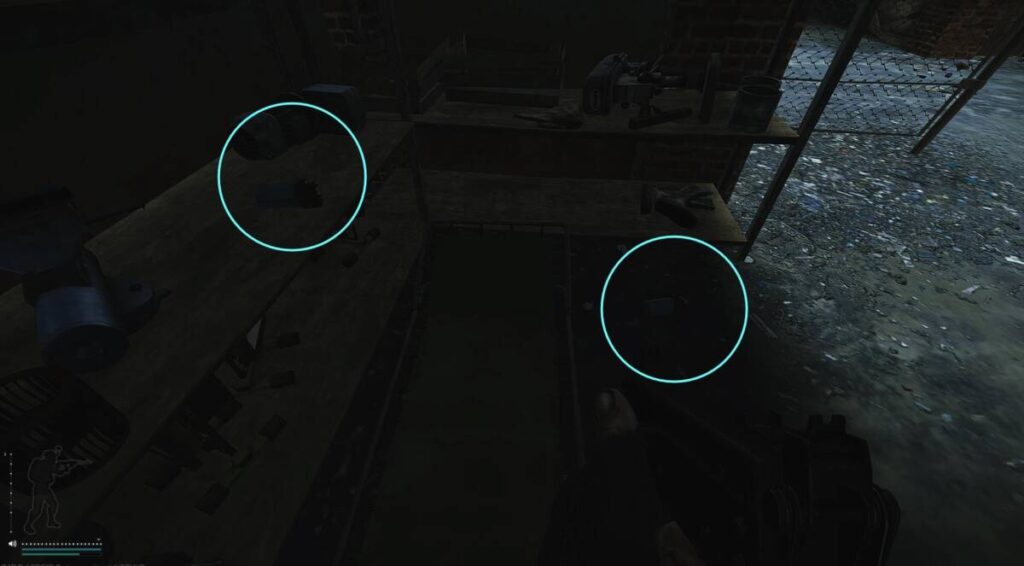 더군다나 왼쪽에 선반에서는 총기 파츠들이 스폰되기도 하여 일석이조로 누릴 수 있는 장소로 손꼽히기도 하죠. 추가적으로, 사진에서 오른쪽에 있는 초록색 대야가 있는 곳에서는 가끔씩 연료통이 떨어져 있기도 합니다.